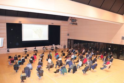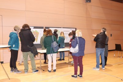 An mehreren Thementischen nahmen die Einwohnerinnen und Einwohner im Anschluss an die Vorträge die Gelegenheit wahr, um sich zu einzelnen Themen genauer zu informieren und Fragen zu stellen.