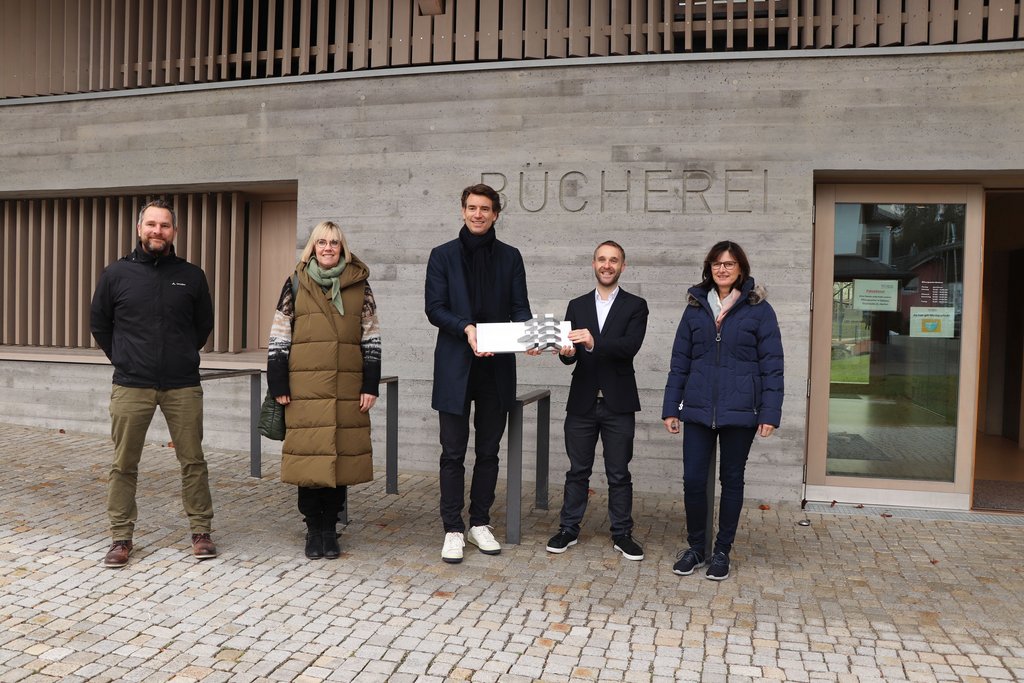 Bürgermeister Daniel Enzensperger zeigte sich von der Auszeichnung begeistert: „Meines Wissens hat unsere Gemeinde noch nie so einen bedeutenden Preis, so eine große Auszeichnung erhalten.“ Besonders stolz sei er darauf, dass dieses Bauwerk das erste sei, das in seiner Amtszeit gebaut wurde und entstanden ist. „Die Verbindung aus Vergangenheit und Gegenwart macht diese Bücherei, gerade auch an dieser Stelle, mit der gelungenen Außenanlage so wertvoll und besonders“, bemerkte Enzensperger. Andreas Wenzler, Sachgebietsleiter im Sachgebiet Bau- und Umwelttechnik der Gemeinde Kressbronn a. B., sprach von einem Schmuckkästchen, das in seiner optischen Erscheinung aber auch in seiner voraussehenden Funktionalität landesweit für Aufsehen gesorgt habe. „Diese Bücherei hat große Bekanntheit erlangt“, sagte Architekt Thomas Steimle. „Wo früher Heu lagerte, stehen nun zwischen dem alten Fachwerk Bücher in den Regalen.“ Ziel sei es gewesen, im Rahmen eines ausgeschriebenen Wettbewerbs, den alten Stadel in der Ortsmitte zu erhalten. Steimle und sein Team bauten infolge die Holzkonstruktion ab, ersetzten den alten Sockel durch einen neuen aus Dämmbeton und setzten das Dachtragwerk wieder auf. „Eine Lattung vor den vollverglasten Stirnseiten sorgt für ein angenehmes Licht im Inneren und erinnert an den ursprünglichen Bau, von dem sich der Neubau auf den ersten Blick kaum unterscheidet“, erklärte Steimle.