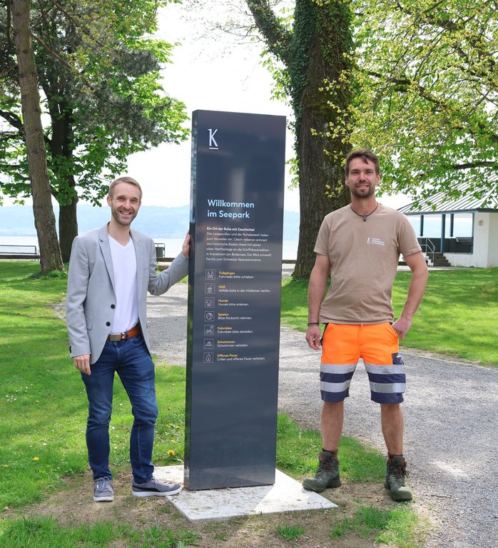Mit den neuen Elementen verfügen nun der Schlösslepark, der Seegarten und der Seepark über eine klare Kennzeichnung im einheitlichen Gemeindedesign. Das Bodan-Areal wurde entsprechend seinem eigenen Corporate Design ausgestattet und fügt sich damit ebenfalls stimmig in das Gesamtkonzept ein. Einheitliche und gut erkennbare Leitsysteme stärken Orientierung, Wiedererkennbarkeit und Aufenthaltsqualität in öffentlichen Anlagen.