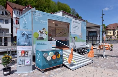 In dem rollenden Energiesparhaus von Zukunft Altbau werden die wichtigsten Energietechniken für zukunftsfähige Altbauten anschaulich gezeigt. Neben Informationen zu modernen Heizsystemen, Solaranlagen und Lüftungssystemen gibt es Erläuterungen zu Innen- und Außendämmung, Wärmeschutzfenstern und Verschattungssystemen. Zukunft Altbau wird vom Umweltministerium Baden-Württemberg gefördert und informiert stets firmenneutral rund um die energetische Sanierung von Gebäuden. Die Besucher können sich außerdem interaktiv und spielerisch einer jeden Sanierung nähern. So ist von jung bis alt im Sanierung(s)Mobil für Spannung gesorgt.