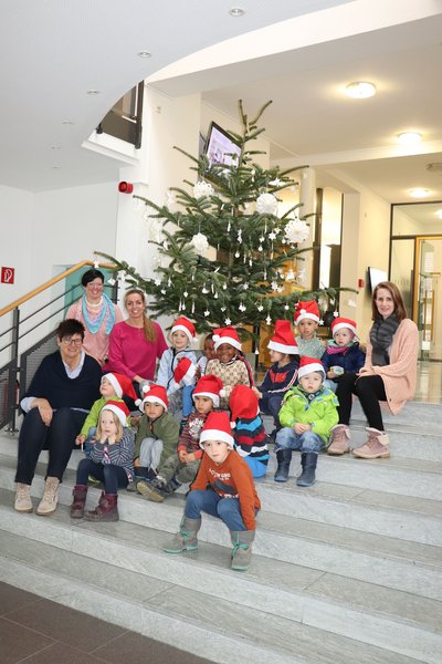 Wie in jedem Jahr durften wieder Kinder einer Kinderbetreuungseinrichtung der Gemeinde den Weihnachtsbaum im Rathaus schmücken. In diesem Jahr kamen die Kinder vom „Pünktchen“ mit selbst gebasteltem Schmuck und brachten Weihnachtsstimmung ins Rathaus. Den größten Stern bekam Bürgermeister Daniel Enzensperger und durfte ihn ganz oben in die Spitze des Baums hängen. Der Rathauschef bedankte sich herzlich bei den Kleinen für den wunderschönen Baumschmuck. „Es ist eine schöne Tradition, dass Kinder den Christbaum in unserem Rathaus schmücken. Herzlichen Dank auch den Mitarbeiterinnen, die sich liebevoll um die Kinder kümmern und mit ihnen den Schmuck gebastelt haben“, so Enzensperger.