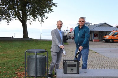„Ich hoffe, dass unser System mit den Kressbronner Pfandkisten angenommen wird und wir alle dadurch einen Beitrag zur Müllvermeidung, Nachhaltigkeit und auch zur Solidarität mit Pfandsammlern leisten. Denn das Durchsuchen von Mülleimern nach Pfandflaschen ist nicht nur in Pandemiezeiten unhygienisch. Ich appelliere daher an alle, die Pfandkisten auch zu benutzen oder ihre Flaschen mit nach Hause zu nehmen “, erläutert Bürgermeister Daniel Enzensperger und dankt Bauhofmitarbeiter Johann Stoischek für das Aufbringen des Kressbronner Wappens auf den Pfandkisten.