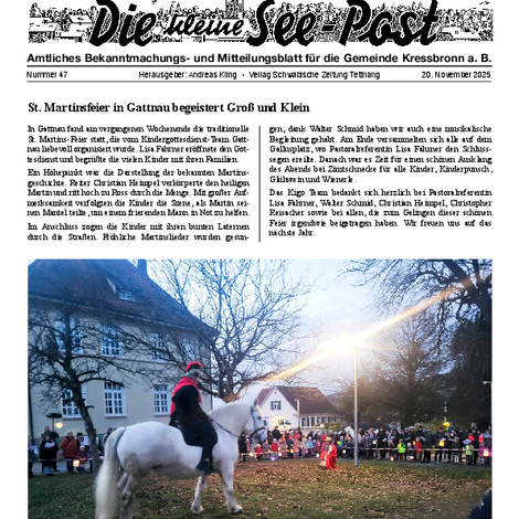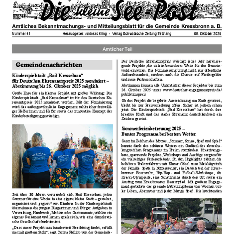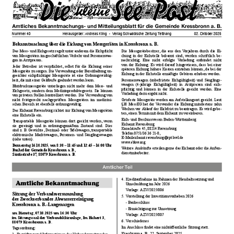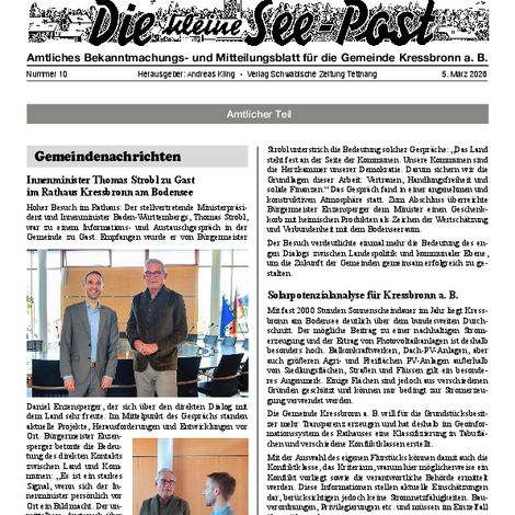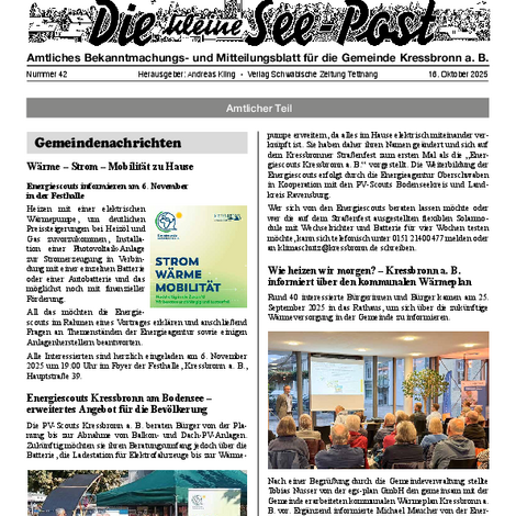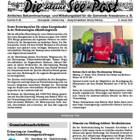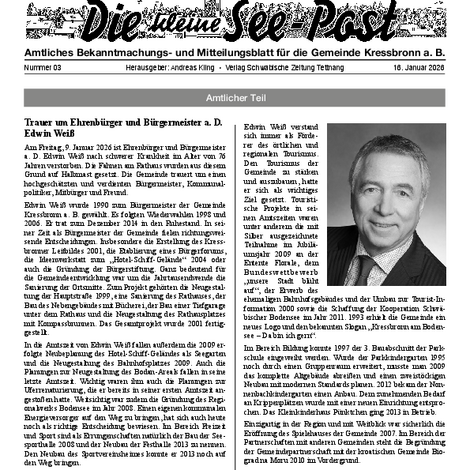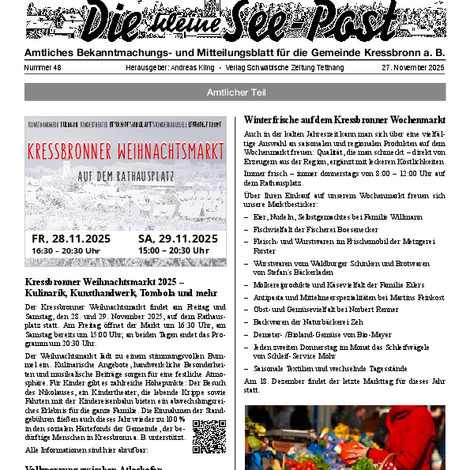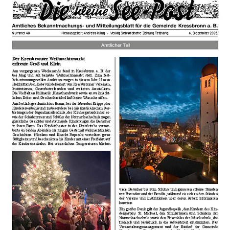 Die kleine See-Post ist das amtliche Mitteilungsblatt der Gemeinde Kressbronn a. B. und erscheint jeden Donnerstag einmal wöchentlich. Im Mitteilungsblatt werden alle amtlichen Bekanntmachungen und Mitteilungen der Gemeindeverwaltung sowie Informationen der Vereine, Schulen, Kinderbetreuungseinrichtungen und Kirchen veröffentlicht. Verantwortlich für die Redaktion ist Andreas Kling. Für den amtlichen Teil und die Gemeindenachrichten ist der Bürgermeister verantwortlich.