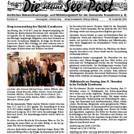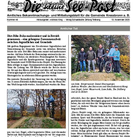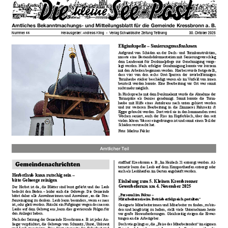 Die kleine See-Post ist das amtliche Mitteilungsblatt der Gemeinde Kressbronn a. B. und erscheint jeden Donnerstag einmal wöchentlich. Im Mitteilungsblatt werden alle amtlichen Bekanntmachungen und Mitteilungen der Gemeindeverwaltung sowie Informationen der Vereine, Schulen, Kinderbetreuungseinrichtungen und Kirchen veröffentlicht. Verantwortlich für die Redaktion ist Andreas Kling. Für den amtlichen Teil und die Gemeindenachrichten ist der Bürgermeister verantwortlich.