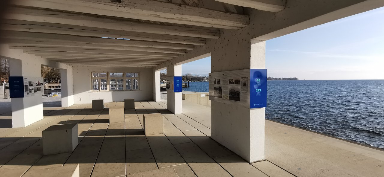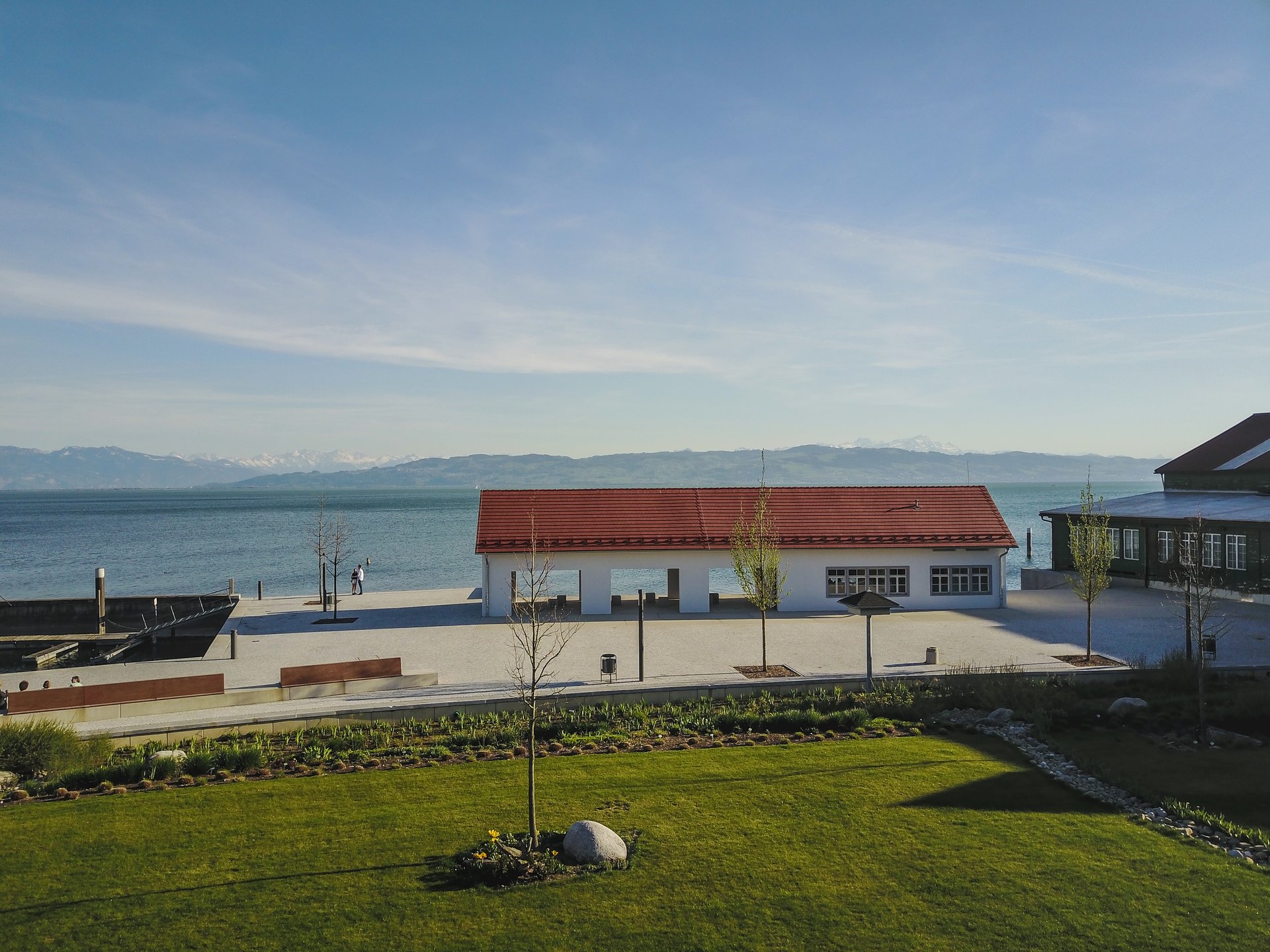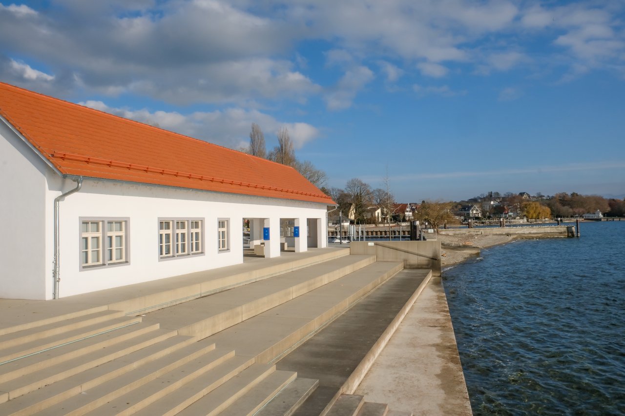 Das ehemalige Verwaltungsgebäude der Bodan-Werft wurde zum Aussichtspavillon umgebaut. Der Aussichtspavillon beherbergt einerseits die Hafenmeisterei für den verpachteten Gemeindehafen und ist andererseits zugleich freizugänglicher Ort für eine Dauerausstellung zur Geschichte der Bodan-Werft.
