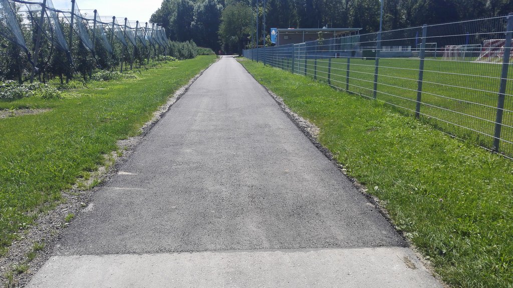 Der Fußballsport in der Gemeinde wird vor allem auf dem Sportplatz im Eichert gepflegt. Dort befinden sich nicht nur zwei Fußballplätze, sondern auch das Vereinsheim des Sportvereins Kressbronn e. V. Zugänglich ist das Areal hauptsächlich über die Zufahrt westlich des Strandbadparkplatzes. Da sich diese in einem schlechten Zustand befand, wurde der Weg saniert und mit einem neuen Asphaltbelag versehen. Die Maßnahme war als zweiter Bauabschnitt des landwirtschaftlichen Weges mit einer Länge von ca. 450 m vom Ende des Strandbadparkplatzes bis zum Ende des SVK-Geländes vorgesehen und schloss damit an den 2015 sanierten Teil, der an die Argenstraße anschließt, an. Der bestehende Asphaltbelag wurde in den Oberbau eingefräst. Mit neu geliefertem Frostschutzkies wurde ein Planum erstellt und eine 10 cm starke Tragdeckschicht eingebaut, insgesamt ca. 1600 m². Bis zum Kletterpark wurde die Fahrbahn um ca. 1,0 m verbreitert, um hier einen gefahrlosen Begegnungsverkehr zu ermöglichen. Somit ist dieser landwirtschaftlich, aber auch von Fußgängern und Radfahrern stark genutzte, Weg auf der gesamten Länge von ca. 1200 m zwischen dem Strandbadparkplatz und der Argenstraße erneuert.
