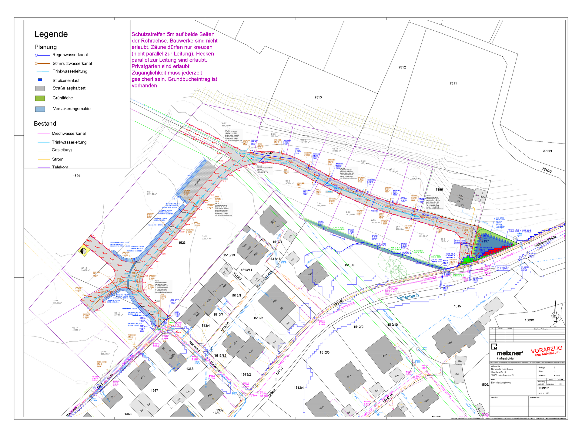 Die Gemeinde plant hinter dem Moosweg das Baugebiet Moos I. Die Erschließung für das Baugebiet umfasst eine sechs Meter breite asphaltierte Ringstraße mit integrierten Verkehrsberuhigungen. Die Entwässerung erfolgt im Trennsystem. Schmutzwasser wird je nach Lage des Grundstücks über zwei getrennte Systeme abgeleitet. Regenwasser wird über Straßeneinläufe, Versickerungsmulden und Notüberläufe kontrolliert abgeführt. Die Wasserversorgung erfolgt über das Württemberger-Schachtsystem. Zusätzlich wird die Verbindung zweier Druckzonen im Netz hergestellt, was die Versorgungssicherheit erhöht.