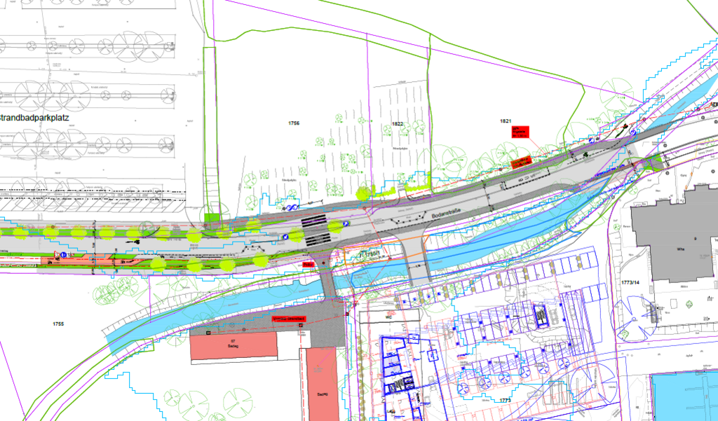 Im Zuge der Planungen um ein Bodan-Hotel beabsichtigt die Gemeinde das letzte Teilstück der Bodanstraße vom Naturstrandbad bis zum Bodan-Areal auch noch zu sanieren. Neben Asphalt- und Kanalarbeiten soll südlich der Bodanstraße ein neuer Gehweg angelegt werden, der eine durchgängige Fußläufigkeit zum Naturstrandbad ohne einen Wechsel der Straßenseite ermöglicht. Die Gehwege werden gepflastert, der Zugangsbereich zum Naturstrandbad optisch aufgewertet und verbreitert.