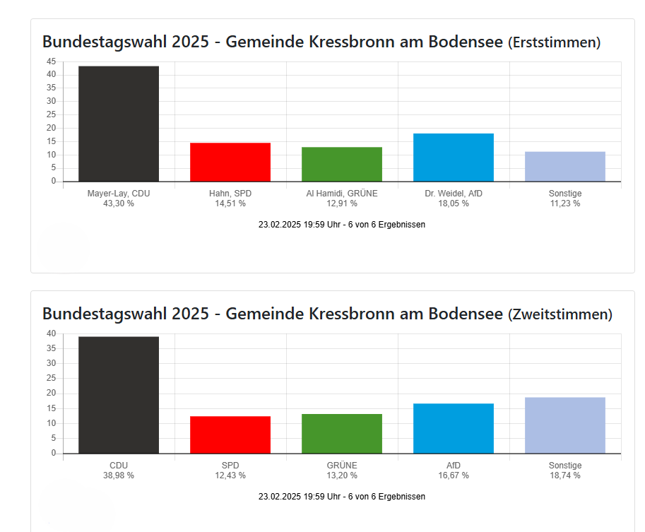 Wahlergebnis der Bundestagswahl am 23. Februar 2025 (Gemeinde Kressbronn a. B.)