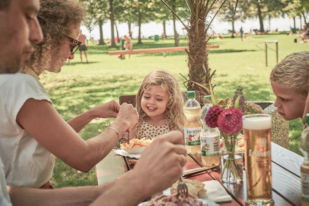Im Kressbronner Naturstrandbad sind Familien und Kinder gern gesehene Gäste. Zur finanziellen Entlastung gibt es für Familien vergünstigte Eintrittsgebühren.