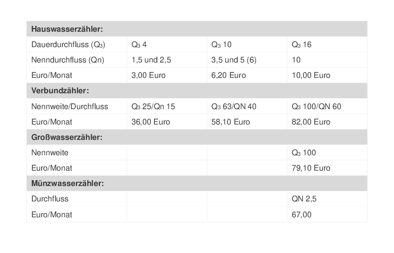Die Grundgebühr hängt hingegen vom Umfang des Wasseranschlusses ab. Sie beträgt seit 01.01.2017: