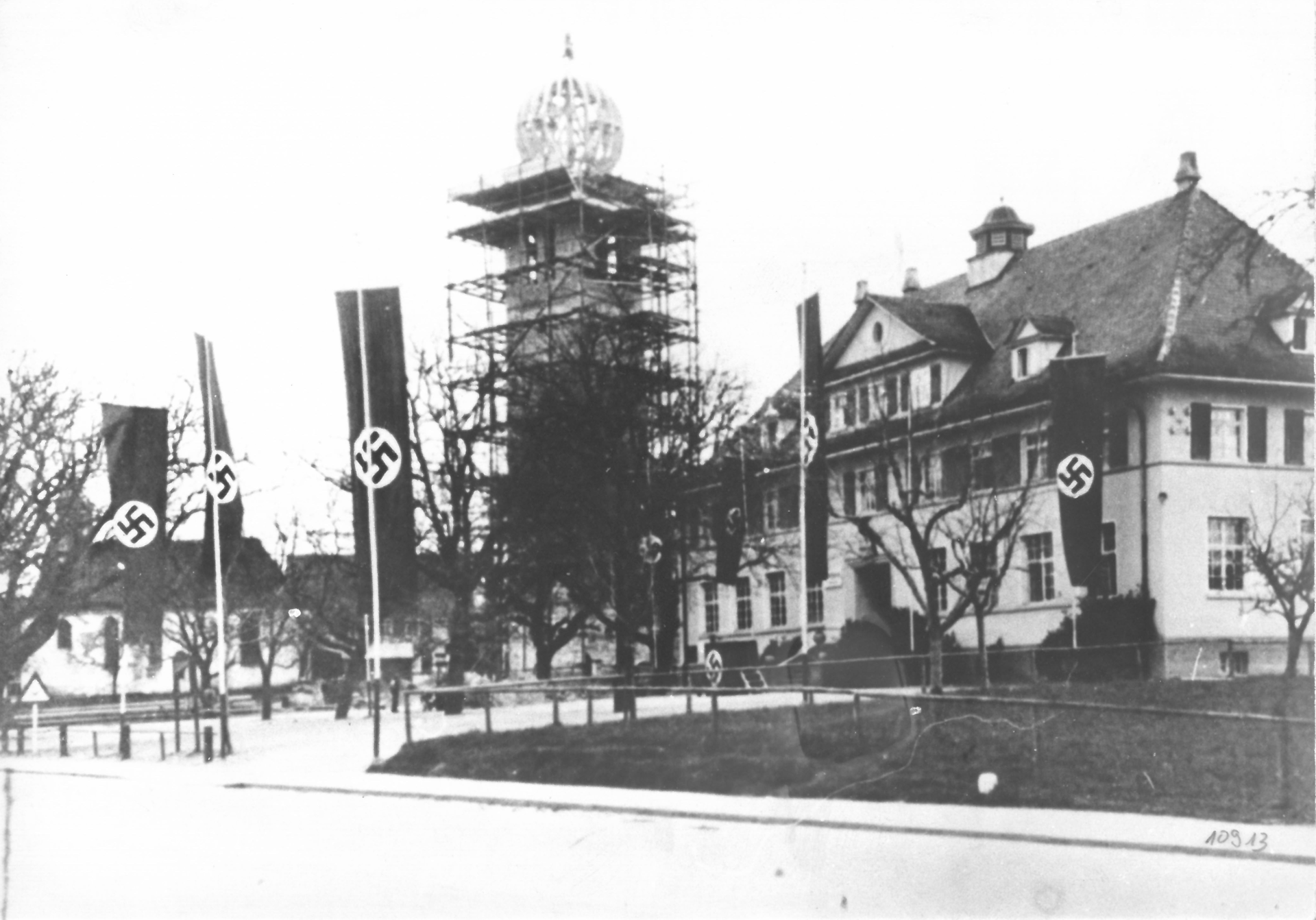 Die Gründung der Gemeinde Kressbronn a. B. 1934 fällt in die Zeit der NS-Diktatur. Der Entschluss, Nonnenbach und Hemigkofen zur Gemeinde Kressbronn a. B. zu vereinigen, wurde unter den Bedingungen der beginnenden nationalsozialistischen Diktatur 1933 vorangetrieben, war allerdings ein seit dem 19. Jahrhundert immer wieder diskutierter Vorschlag. Sichtbare Spuren der NS-Herrschaft im Ortsbild waren ab 1933 die allgegenwärtigen Hakenkreuzfahnen, nach NS-Organisationen und Personen umbenannte Straßen und Plätze oder auch die sogenannte Gauführerschule, die von der NSDAP als Ausbildungsstätte für ihre Parteiorganisationen im Schlössle in der Seestraße eingerichtet wurde.