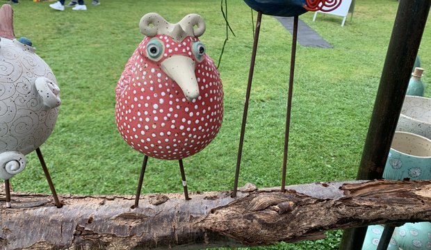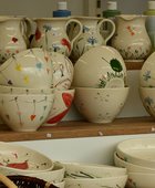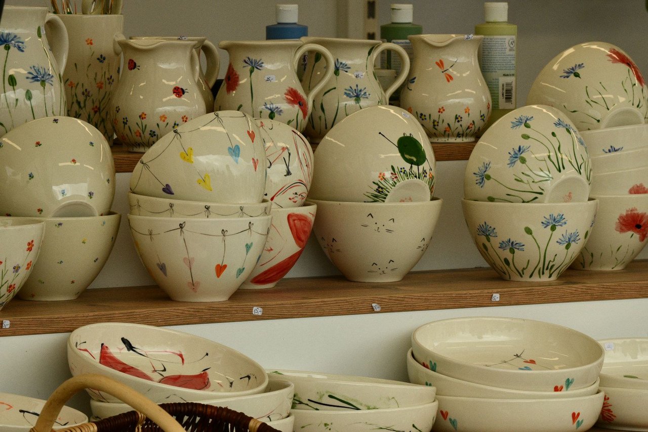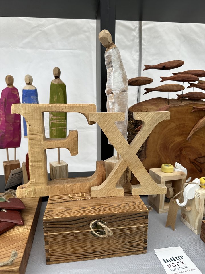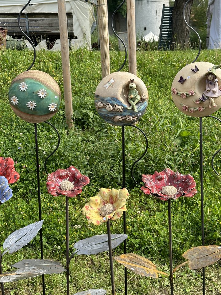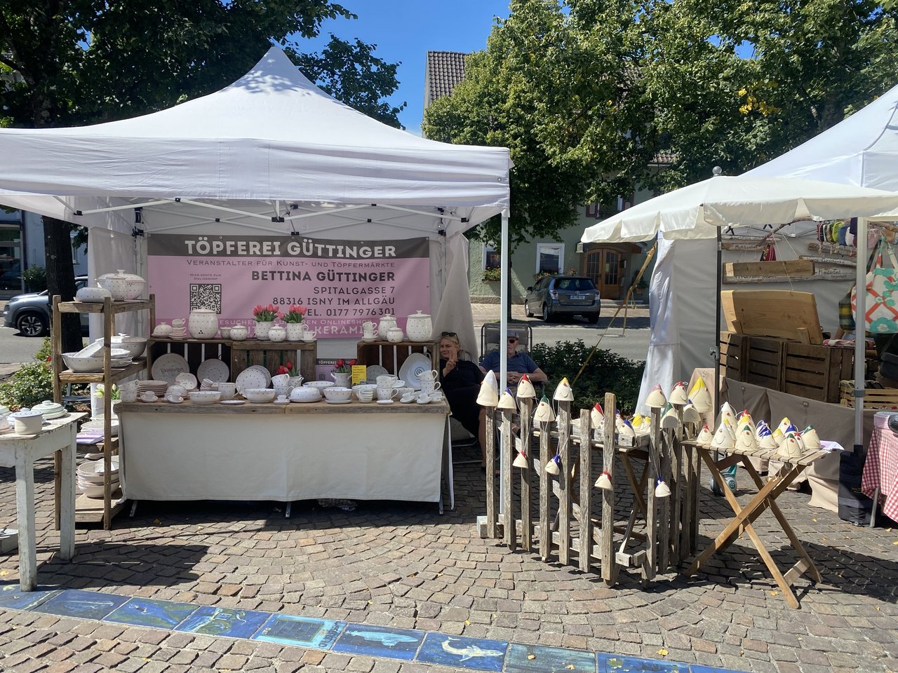Viele Künstler und Handwerker bieten ihre selbst hergestellten Waren zum Verkauf an.Töpferwaren, verschiedene Arten von Schmuck, Besen, Skulpturen aus Stein und Metall, Windspiele, Drechselarbeiten, Naturseifen, Lodenwaren, Bilder und Gartendekorationen aus Holz und Metall sind erhältlich. Der Markt findet bei jeder Witterung statt.